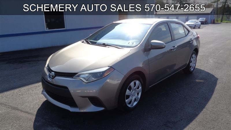 Experience comfort and reliability in this 2014 Toyota Corolla LE, available now at Schemery Auto Sales LLC. Dressed in a refined beige finish, this Corolla is powered by a fuel-efficient 1.8L 4-cylinder engine paired with a smooth 6-speed automatic transmission-perfect for daily commuting or weekend adventures. Step inside to find a thoughtfully designed interior featuring leather seating, dual power seats, and keyless entry for added convenience. Stay connected and entertained with Bluetooth connectivity, USB and AUX ports, and an AM/FM CD/MP3 stereo system. Safety takes the front seat with ABS, traction control, multiple airbags, a backup camera, and backup sensors, ensuring peace of mind on every trip. Additional highlights include cruise control, power locks and windows, a tilt steering wheel, and a trip/mileage computer for easy monitoring. With its reputation for dependability and efficiency, this Corolla LE is ready to deliver years of trusted performance. Visit Schemery Auto Sales LLC or call 570-547-2655 today to schedule your test drive and make this exceptional Toyota yours.